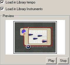 Each Template, Collection, Example and Melody in the Music Library has its own instrument sound(s) and tempo (speed). If the 'Load in Library Tempo' box is checked, the tempo (speed) of the currently open Hyperscore piece will change to match that of the incoming file. If it is not checked, the incoming file will adapt to match the tempo of the Hyperscore piece into which it is being loaded.