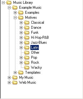 If you have selected from the Motives sub-menu, select a category from Accompaniment, Bass, Melody or Percussion and then choose a file from the list that appears.