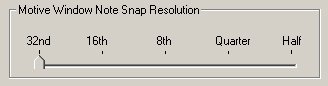 The Note Snap Resolution slider enables you to set the smallest note value recognized by the snap-to-grid function in the Melody or Percussion Windows.